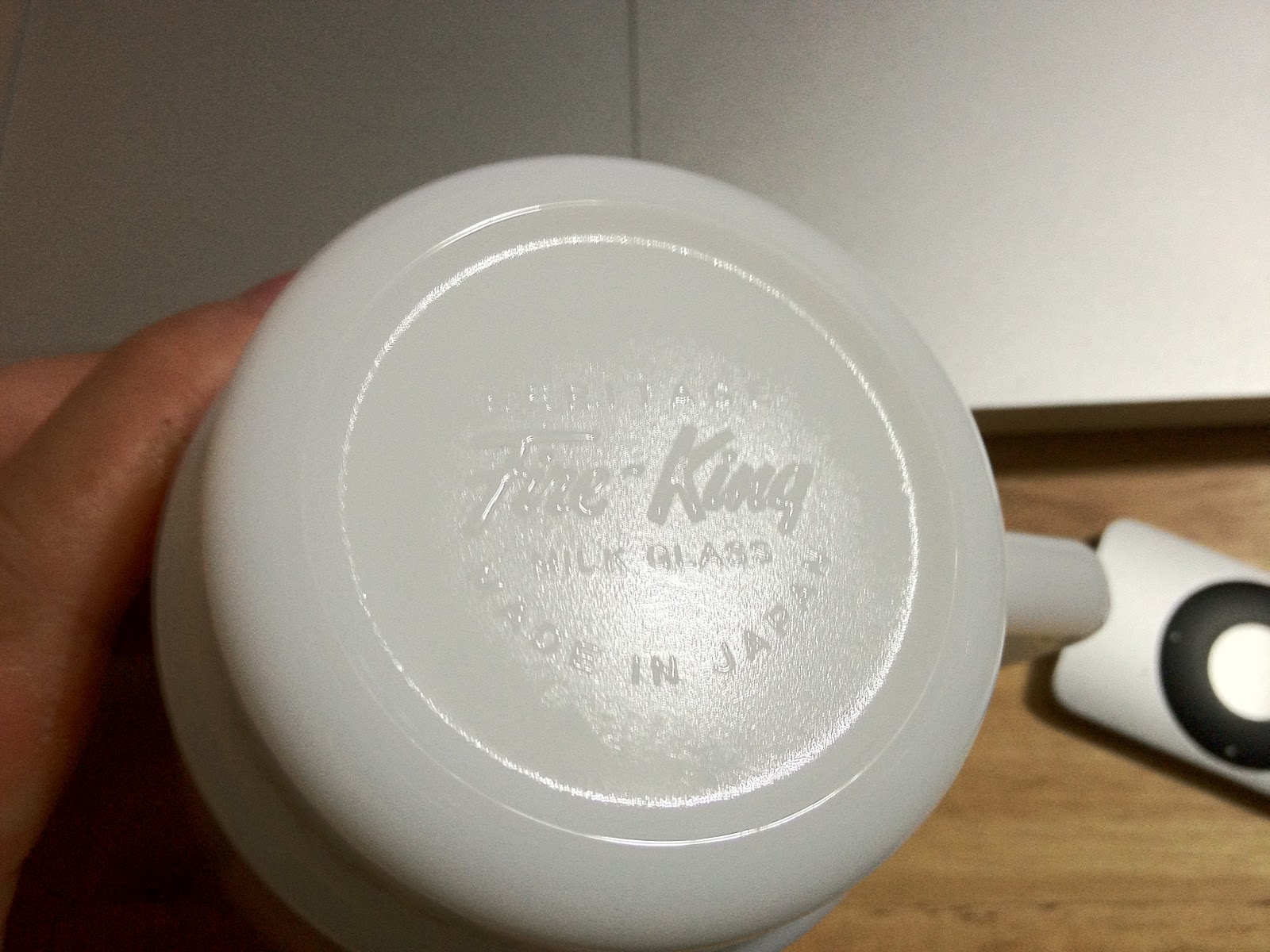 | Fire King Japan's Design Logo on bottom そしてマグの底には ファイヤーキングジャパンの ロゴのデザインがちゃんと刻まれています |